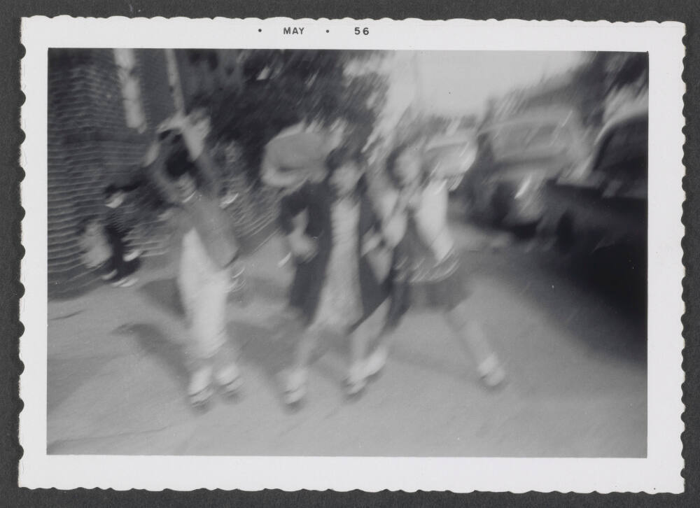 DescriptionBlurry image of children dancing on the sidewalk.