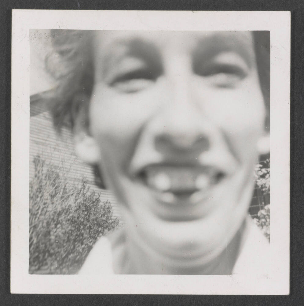 DescriptionClose-up image of woman smiling, blurred.