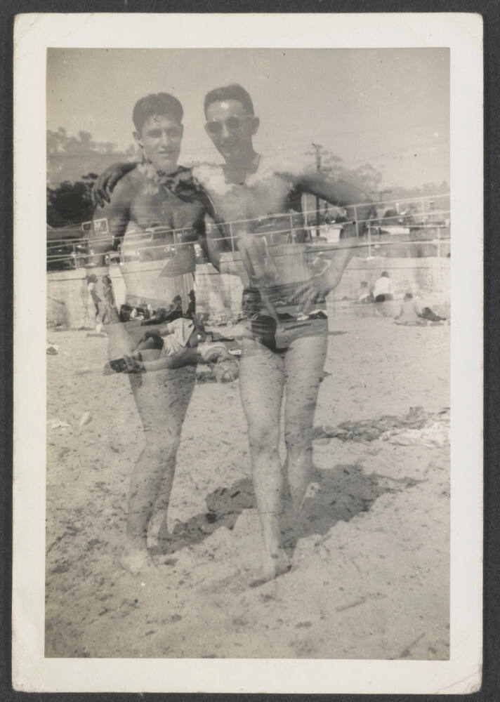 Double Exposure: Two men at beach