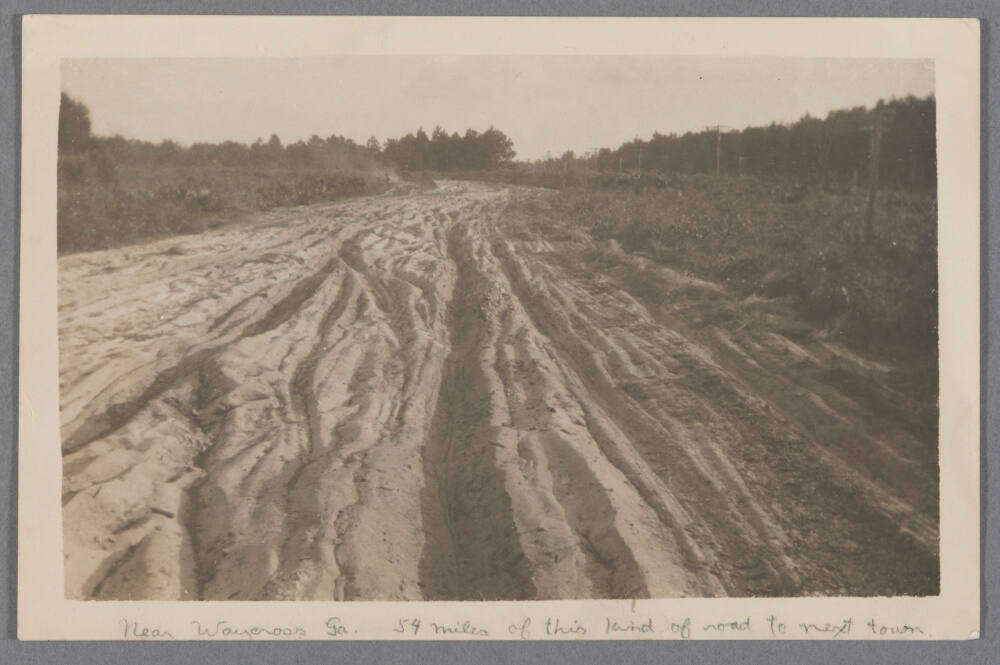 InscribedOn sheet recto, bottom edge, in pencil: "Near Waycross, Ga. 54 miles of this kind of road to next town."