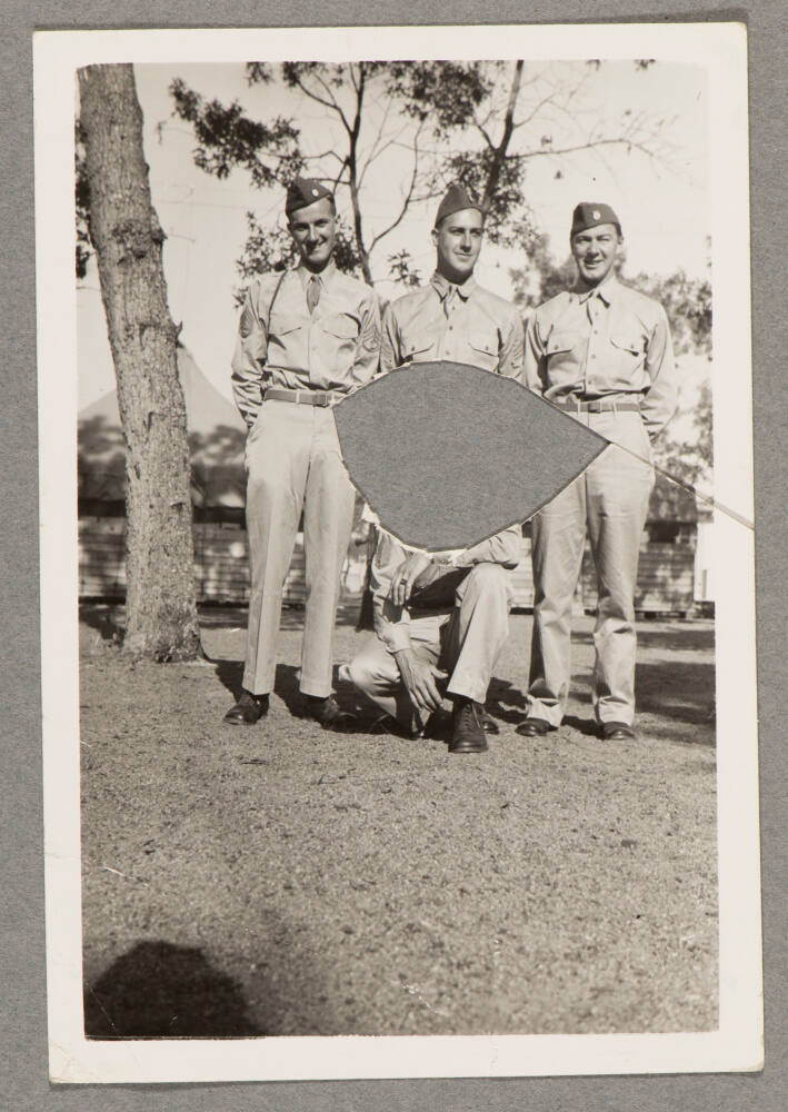DescriptionImage of four servicemen in uniform with one man's face cut out of photograph.