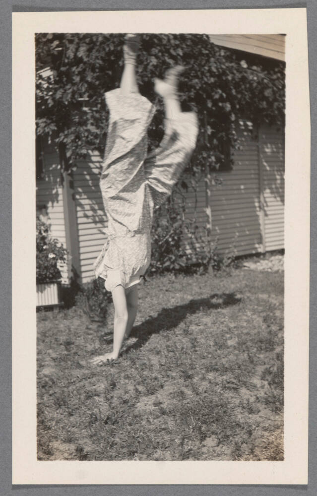 DescriptionImage of woman doing handstand in the grass.