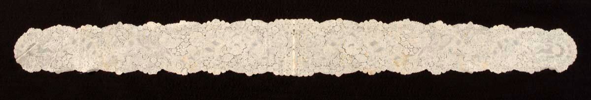 DescriptionHigh-quality lace worked in whole and some half stitches, with raised edges and veins, decorative openings and a variety of fancy-mesh fillings. There is no ground, but short bars are used to join some motifs together.