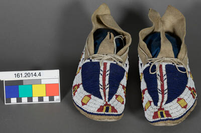 DescriptionA pair of man's moccasins with fully beaded uppers.