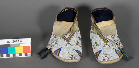 DescriptionA pair of man's moccasins with fully beaded uppers.