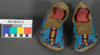DescriptionA pair of man's moccasins with fully beaded uppers.