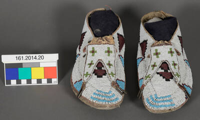 MediumNative leather, rawhide, glass beads, metal cones, cotton cloth