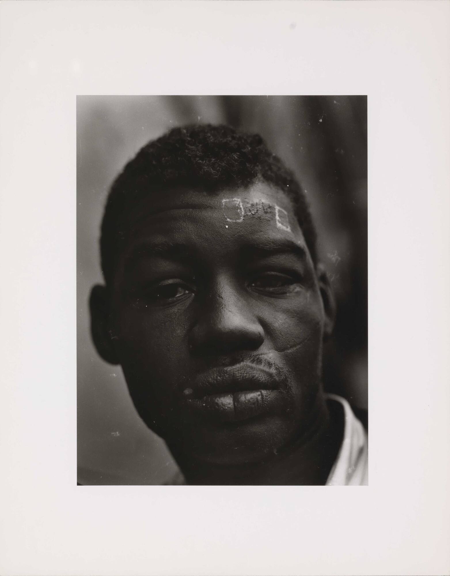 DescriptionPortrait of African American man with mustache and scars across forehead and left cheek.Copyright© Bruce Davidson/Magnum Photos