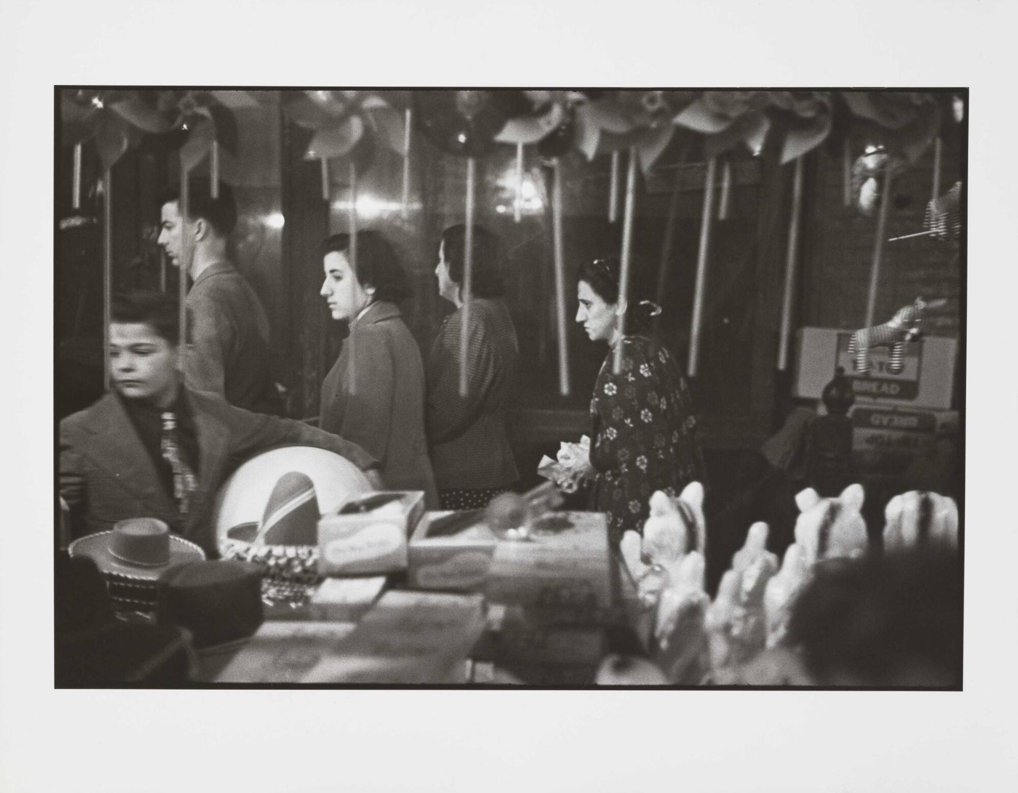 Louis Faurer is best known for an innovative body of personal photographs made on the streets of New York and Philadelphia. These are fresh and powerful images—technically daring and rich in their observations on the human condition. The San Gennaro Festival was an annual event in New York’s Little Italy, a weeklong celebration with parades and music. Faurer also enjoyed a successful career as a fashion photographer in the 1940s–50s. He worked for magazines such as Harper’s Bazaar, Vogue, Mademoiselle, Glamour, Life, and Look.