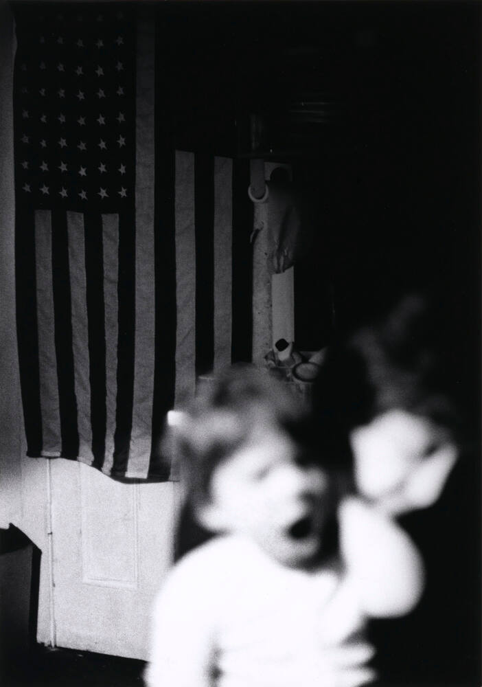 DescriptionBlurry image of young child in distress with mouth open standing in front of American flag which is hanging vertically on a door behind. Overall image is dark with child's features blown out.ProvenancePurchased from Stephen Bulger Gallery, Toronto, Ontario, Canada by the Hall Family Foundation, Kansas City, MO, 2015;