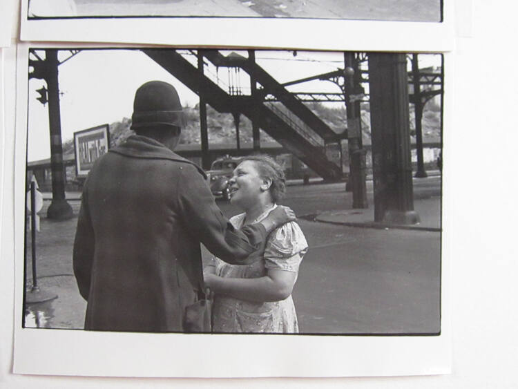Working with a small 35mm camera, Helen Levitt depicted people in New York with grace and warmth. This unusual set of four variant images reveals her candid, unstaged working method and her attentiveness to the full interaction unfolding before her. This interest in time is telling: in addition to her still photography, Levitt worked with a motion picture camera in the 1940s and 1950s.