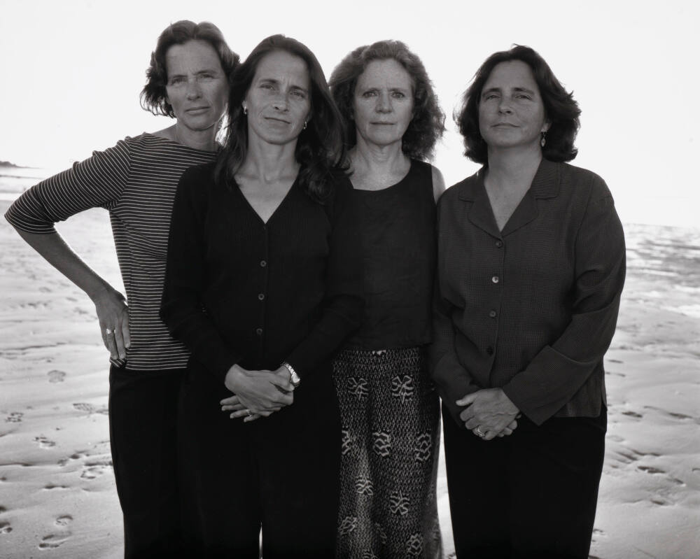 DescriptionPortrait of four sisters standing on beach next to one another. Two sisters, Mimi and Laurie, stand with hands crossed in front.Copyright© Nicholas Nixon