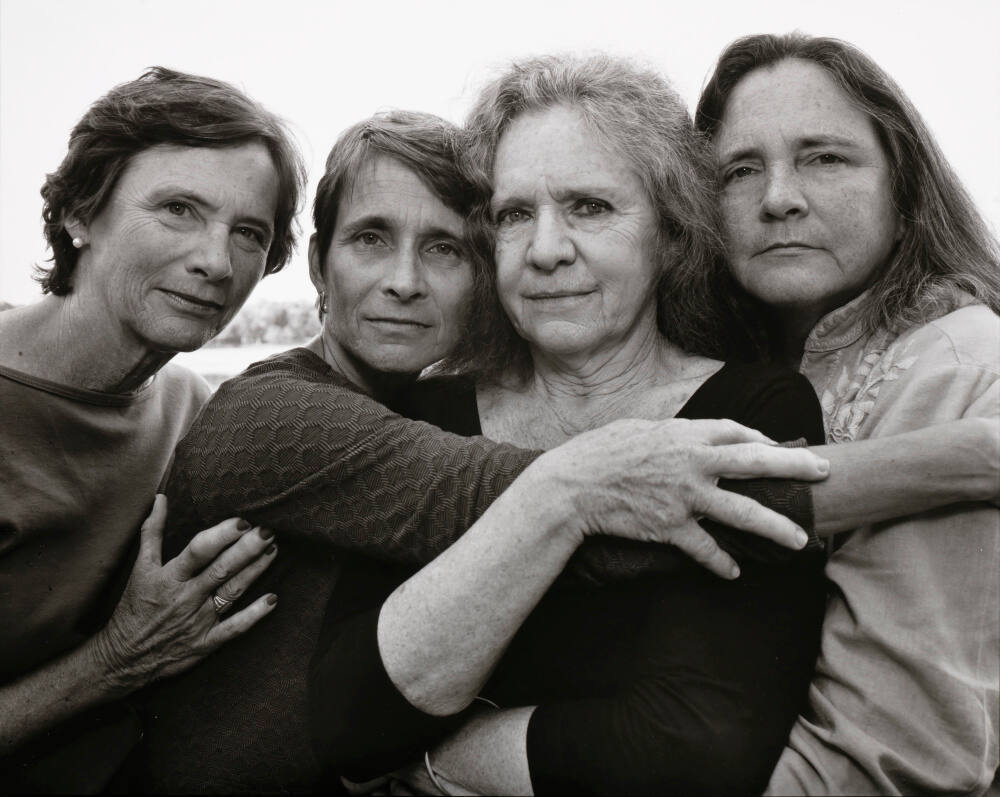 DescriptionPortrait of four sisters, Heather, Mimi, Bebe, and Laurie, tightly grouped with arms around one another. Mimi, second from left, stretches out her arm to embrace two of the sisters.Copyright© Nicholas Nixon