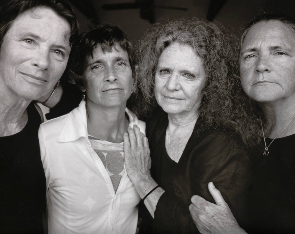 DescriptionClosely cropped portrait of four sisters, Heather, Mimi, Bebe, and Laurie, with arms around one another.Copyright© Nicholas Nixon