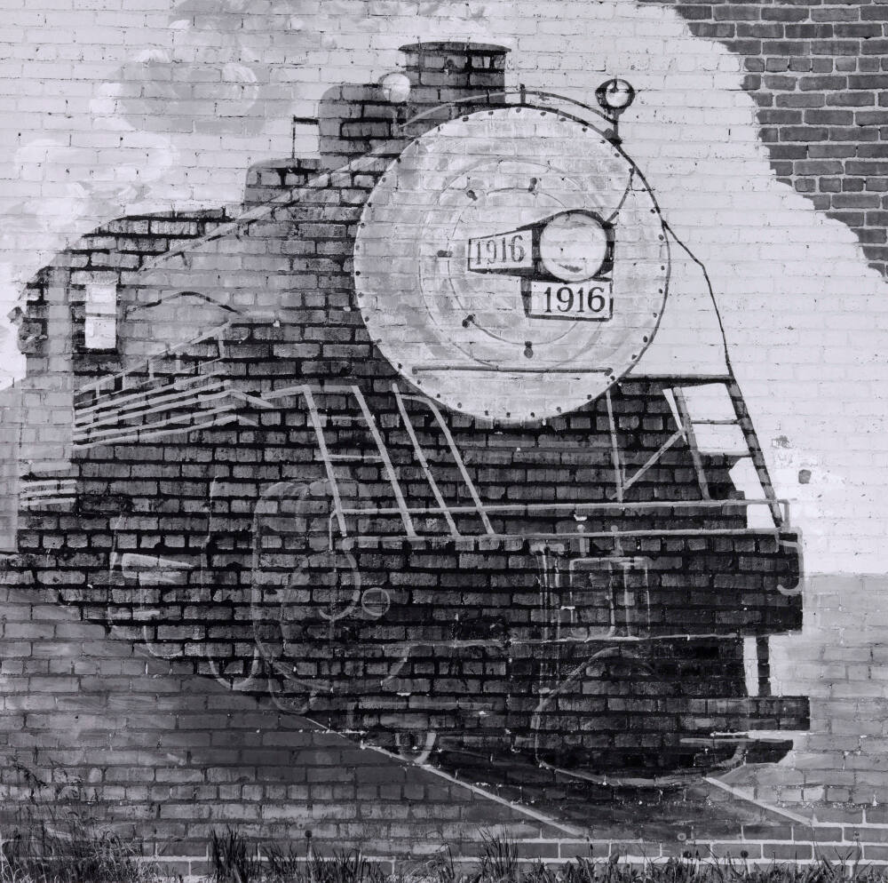 DescriptionImage of a locomotive mural painted on a brick wall.Copyright© David Plowden
