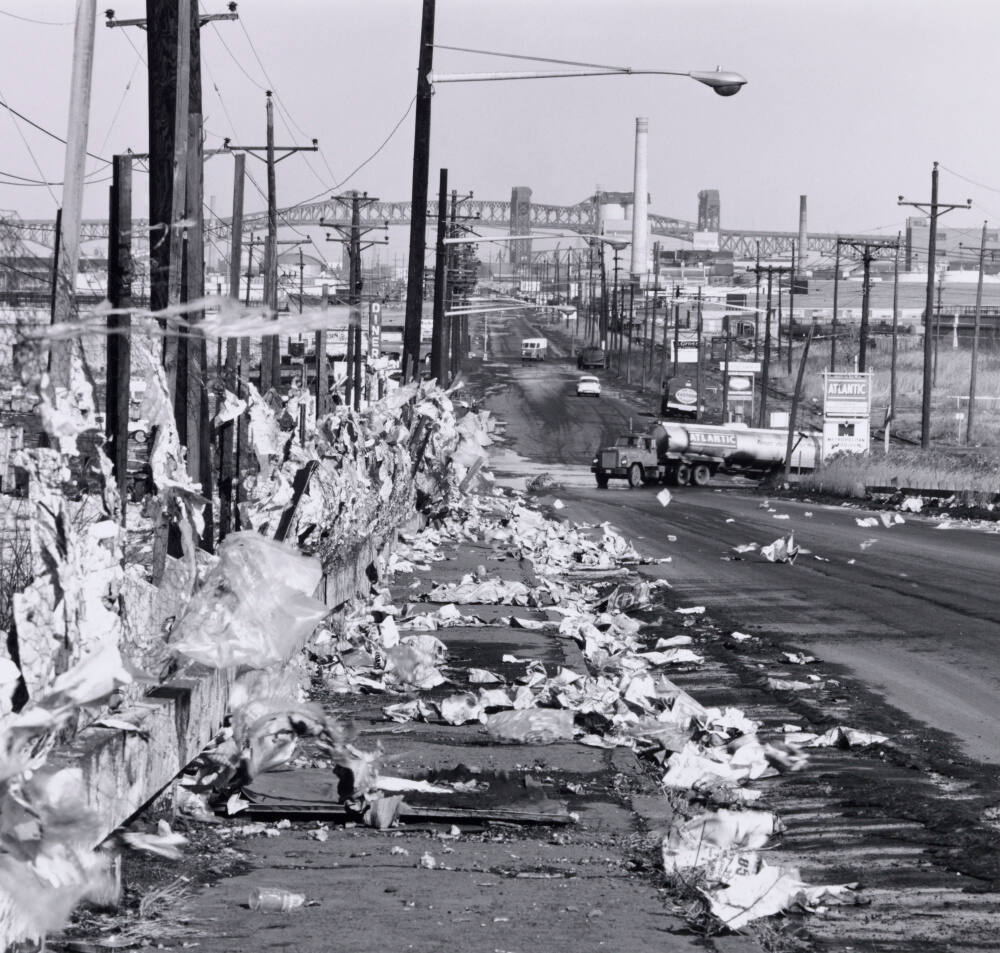 DescriptionImage of street and sidwalk covered in debris.Copyright© David Plowden