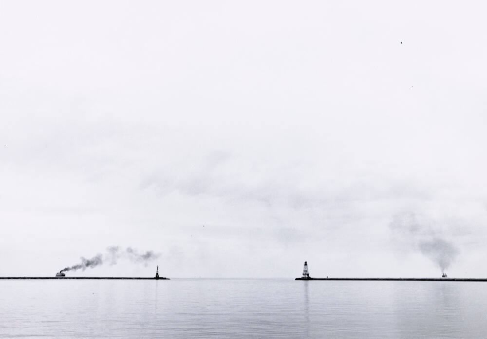 Lake Michigan, off Ludington, Michigan, showing Car Ferry Spartan, Left, and Steamer Diamond Alkali