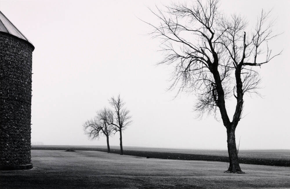 DescriptionImage of corn crib near barren trees along flat landscape.Copyright© David Plowden