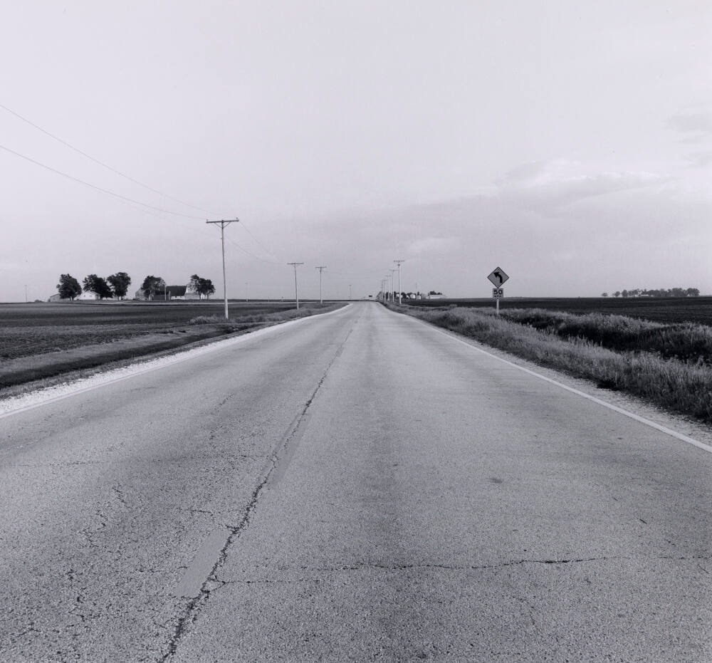 DescriptionImage of highway between two flat areas of land; trees at horizon.Copyright© David Plowden
