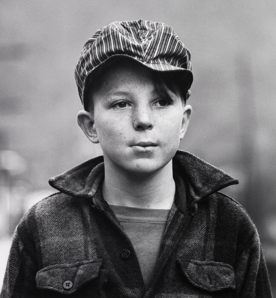 DescriptionImage of young boy with freckles, biting lip, and wearing striped hat and flannel shirt.Copyright© David Plowden