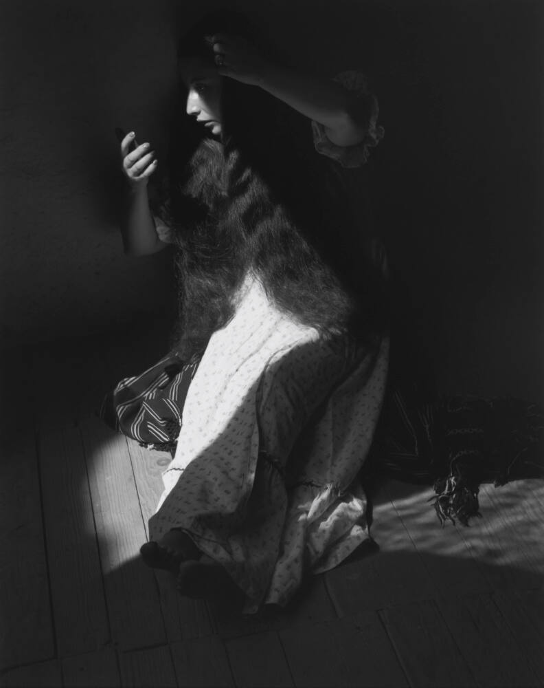 DescriptionImage of woman with long wavy hair wearing a nightgown, seated with her legs crossed, and looking into a handheld mirror while her face is illuminated by narrow stream of sunlight.Exhibition HistoryRotation 26. The Nelson-Atkins Museum of Art, Kansas City, MO, March 29, 2019- August 25, 2019, no cat.