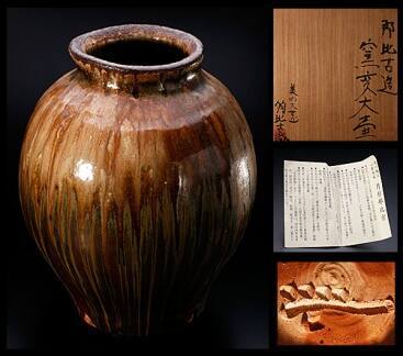 DescriptionJar with Shino glaze (?)