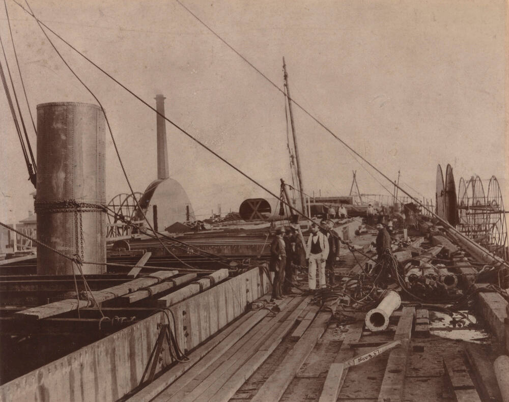 On the deck of the SS Great Eastern under construction