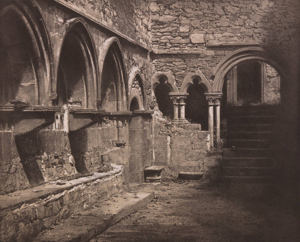 On mount recto, bottom, printed in black ink: "St. Brieuc_Guyon frères," , "ABBAYE DE BEAUPORT_CLOITRE.", "Paris Dumoulin, 13 Quai des Augustins."