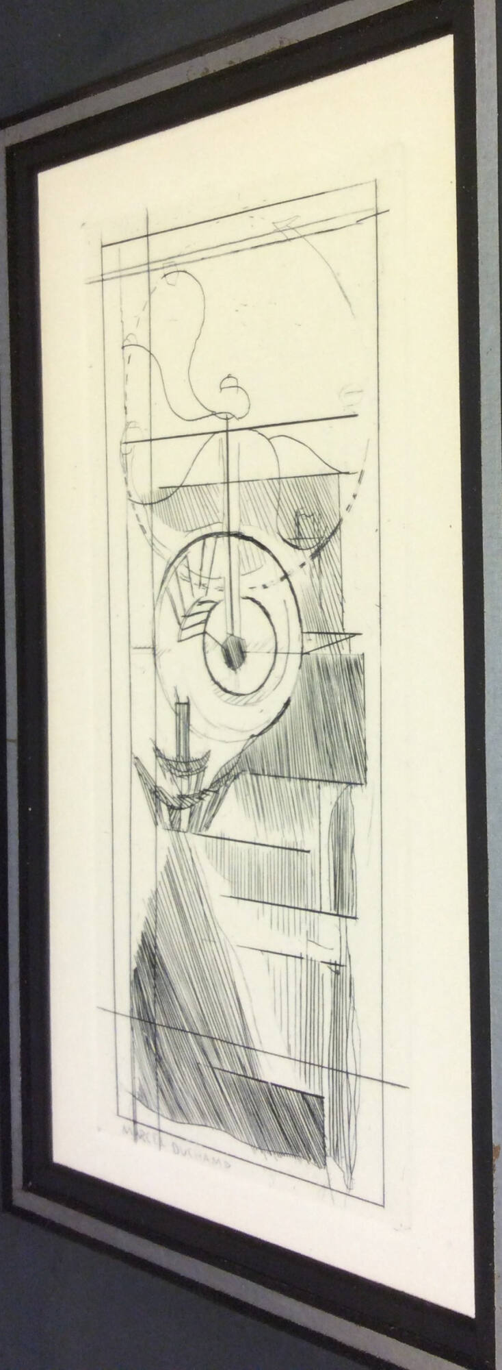 DescriptionBlack and white abstracted, etched image on white paper with several circles within circle at center point. Most notable are the lines across top and bottom and at left and right, which are cancellation marks on the plate itself.Copyright© Succession Marcel Duchamp / ADAGP, Paris / Artists Rights Society (ARS), New York