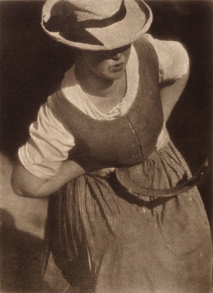 DescriptionPortrait of woman harvester holding sickle. She's wearing a dress with a full skirt and a hat which partially obscures her face.Exhibition HistoryRotation 26. The Nelson-Atkins Museum of Art, Kansas City, MO, March 29, 2019- August 25, 2019, no cat.