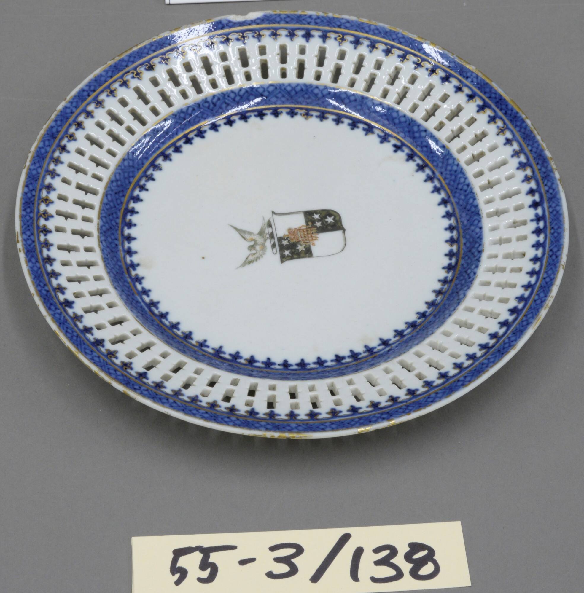 DescriptionPlate, pierced border, with blue and white borders, with Newman arms.