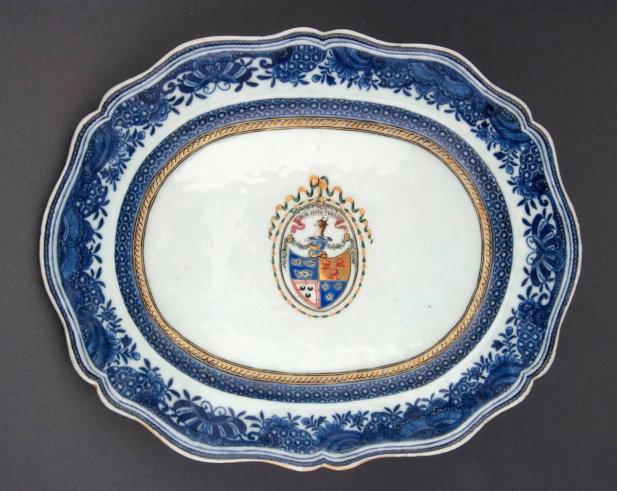 DescriptionDecorated with underglaze blue, Fitzhugh borders, bearing the Gordon arms.
