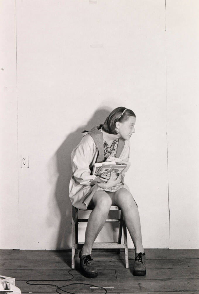 DescriptionImage of woman wearing short dress and jacket seated in chair against wall while holding books and looking to the side with coy smile.ProvenancePurchased from Contemporary Curated 9403, Sotheby's, New York, September 29, 2015, lot 248 by The Hall Family Foundation, Kansas City, MO, 2015;