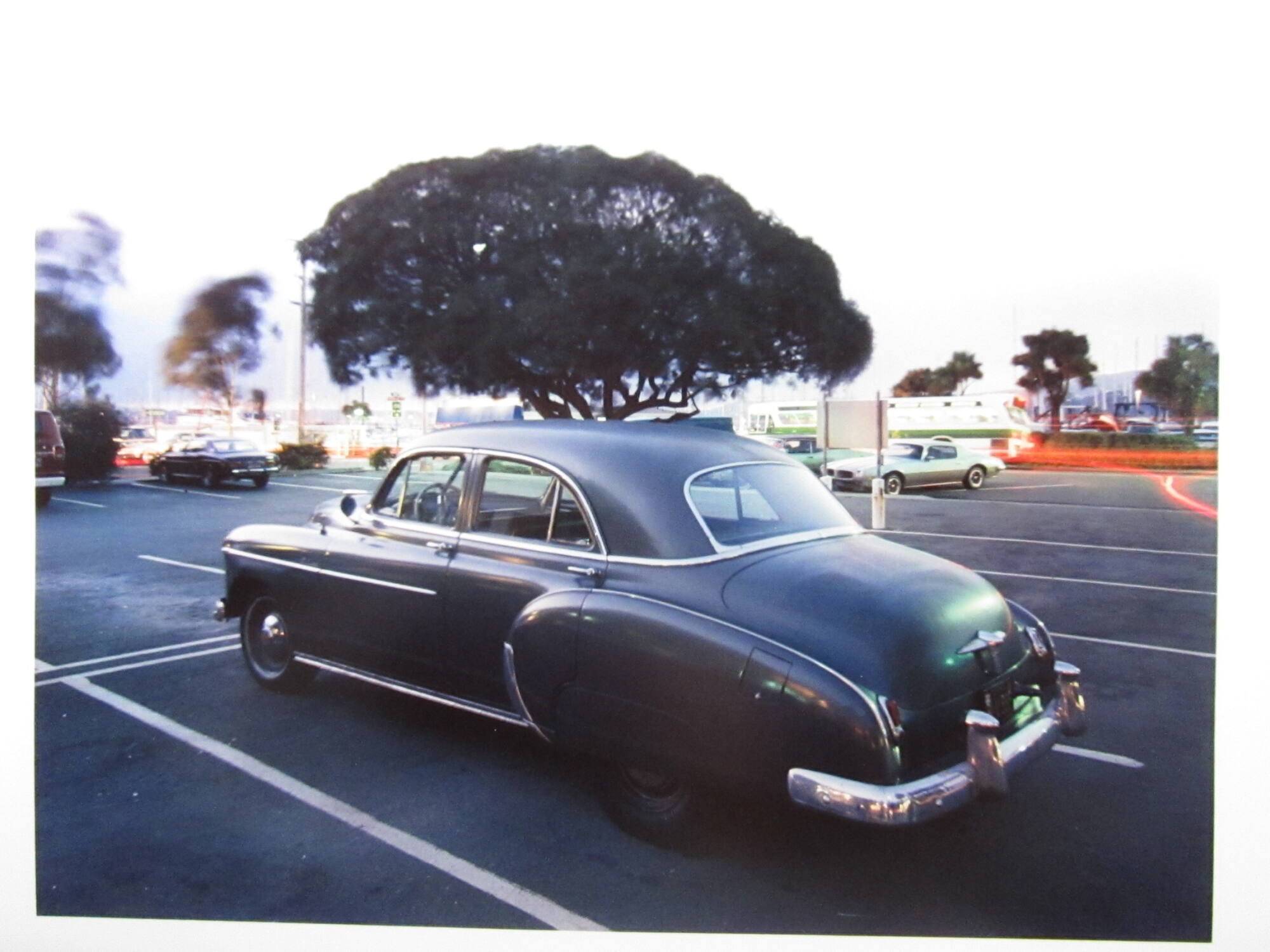 DescriptionOne of ten photographs included in portfolio. Image of vintage black car parked in middle of parking lot with tree. The blur of city lights shine in the background.Copyright© Joe Maloney