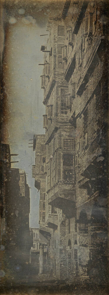 DescriptionVertical panoramic image of tall brick building with windows and decorative elements on facade. Unique sized uncased daguerreotype housed between two sheets of glass and sealed with brown paper tape.ProvenanceThe Hall Family Foundation, Kansas City, MO,2015;