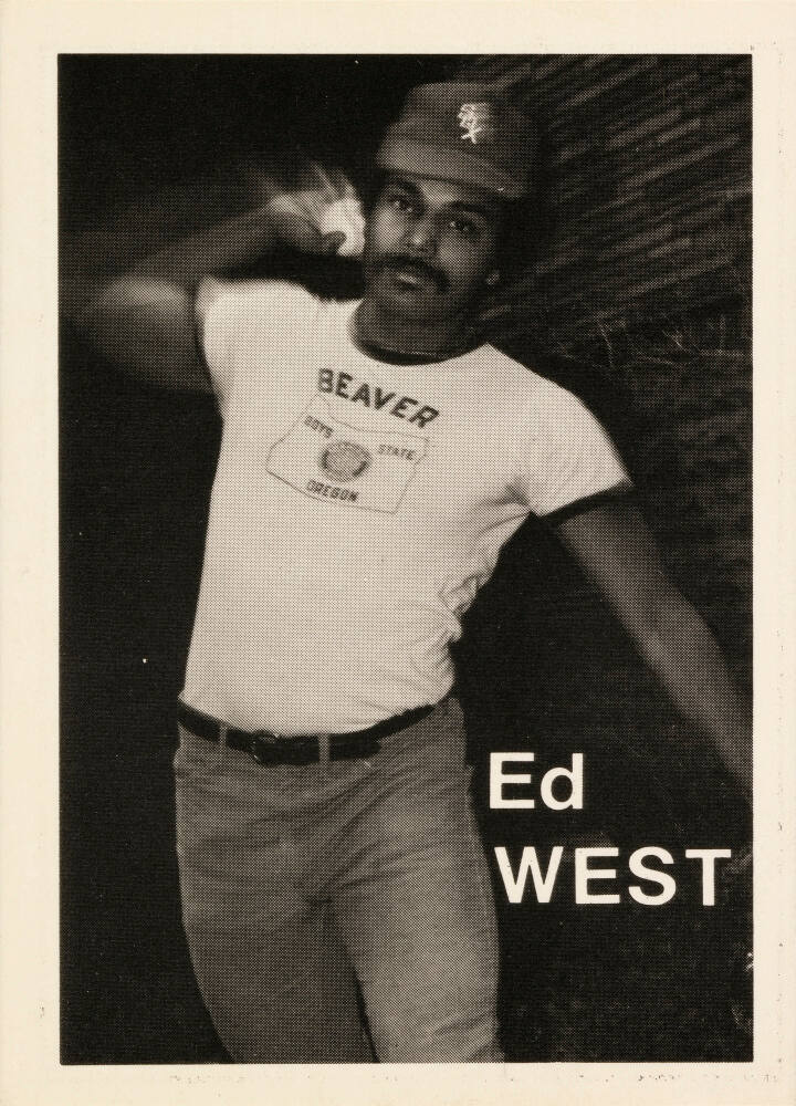 InscribedName printed on sheet recto, lower right, in white: "Ed / WEST"