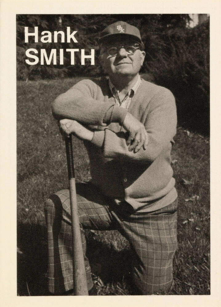 Statistics and quote by respective artist printed on card verso, in black: "Height: 5’ 7” / Weight: 187/ Born: Blumington, Ill. / Home: Bloomington, Ind. / Throws: Right / Bats: Right FP: Brovira DW glossy / FC: Darkroom FF: Fine grain pos. / FD: DK-50 / FPh: Fred Sommer / Hank Smith / I chose the White Sox because I / sometime wear white socks. Camera / photography may be here to stay. / That leave a lot of room for other kinds of photographs and high time."