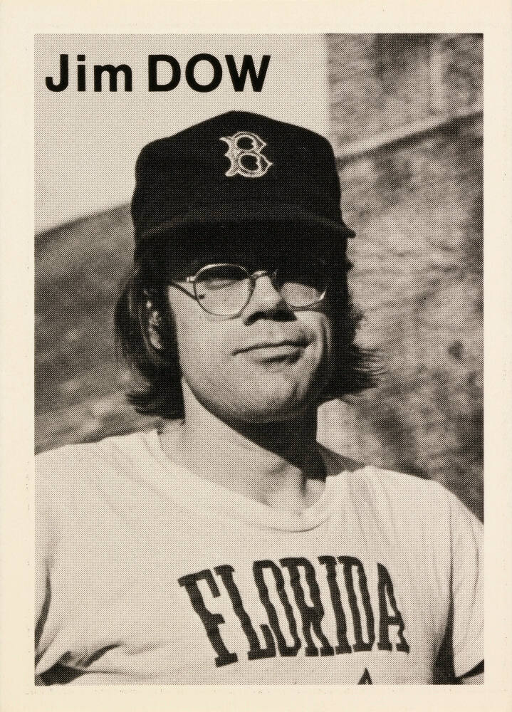 Statistics and quote by respective artist printed on card verso, in black: "Height: 5’ 8” / Weight: 140 / Born: Boston, Mass. / Home: the same / Throws: Left / Bats: Right FP: A-20/ FC: Deardorff FF: Versapan / FD: Amidol / FPh: Differs / Jim Dow / Photo strikes me as second-hand, / ball, in general, is more immediate. / In high school I was fat, slow and / couldn’t hit curve balls. Had it / been different I would have chosen / ball. I still would."