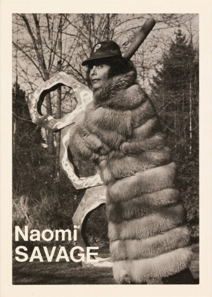 InscribedName printed on sheet recto, lower left, in white: "Naomi / SAVAGE" Statistics and quote by respective artist printed on card verso, in black: "Height: My feet reach / Weight: Heavy as usual / Born: Guess / Home: In the darkroom / Throws: Occasionally / Bats: Sometimes FP: Fresh / FC: Old black one FF: unexposed / FD: New / FPh: My husband / Naomi Savage / As a baseball player, I think / professional bubble-gum chewers / make the best photographers, espec- / ially if who’s on first and what’s / on second."