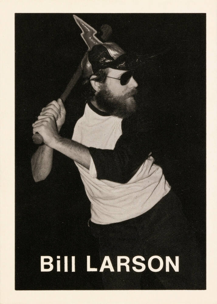 Statistics and quote by respective artist printed on card verso, in black: "Height: 5’ 11” / Weight: 165 / Born: N. Tonawanda, N.Y. / Home: Philadelphia, Pa. / Throws: Right / Bats: Right FP: Kodak / FC: Camera Obsc. FF: Kodak / FD: Kodak / FPh: The good ones / Bill Larson / I have played the game a long time, / but I have yet to reach home plate."