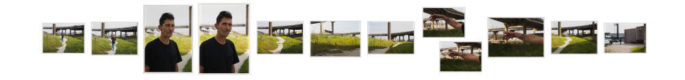 DescriptionThis sequence of photographs consists of twelve images and begins with a man and an orange cat walking on a dirt path towards the camera. The path is flanked on either side with green grass and tiny blooming white flowers. In the background there is an elevated highway crossing over an industrial area. In the following images, the location is the same, but they are printed in various sizes with alternating horizontal and vertical formats and differing perspectives. In the final image, the man is shown from behind carrying the cat under his arm as he walks towards the "Aloha Motel" where another man in a striped shirt stands facing him. At the bottom of the image, the dirt path leads to the parking lot.ProvenanceThe Hall Family Foundation, Kansas City, MO, 2016;