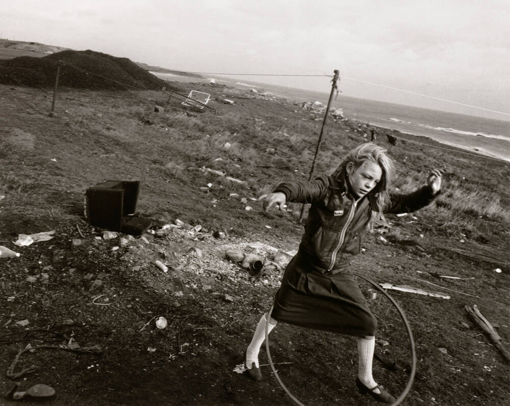 DescriptionImage of young girl, surrounded by trash, spinning hoola-hoop around waist in a field beside the ocean.Gallery LabelThis image conveys a sense of life amid desolation, as a young girl plays with a hula hoop on a debris-strewn beach. Chris Killip began photographing the deindustrialized landscape of Northeast England in the mid-1970s. Killip’s raw, emotionally charged images pictured people struggling to survive “in a system which regards their lives as disposable.” He published his work in the influential book In Flagrante (1988). Though rooted in a documentary-style approach, Killip’s pictures are subjective views of people’s lives.