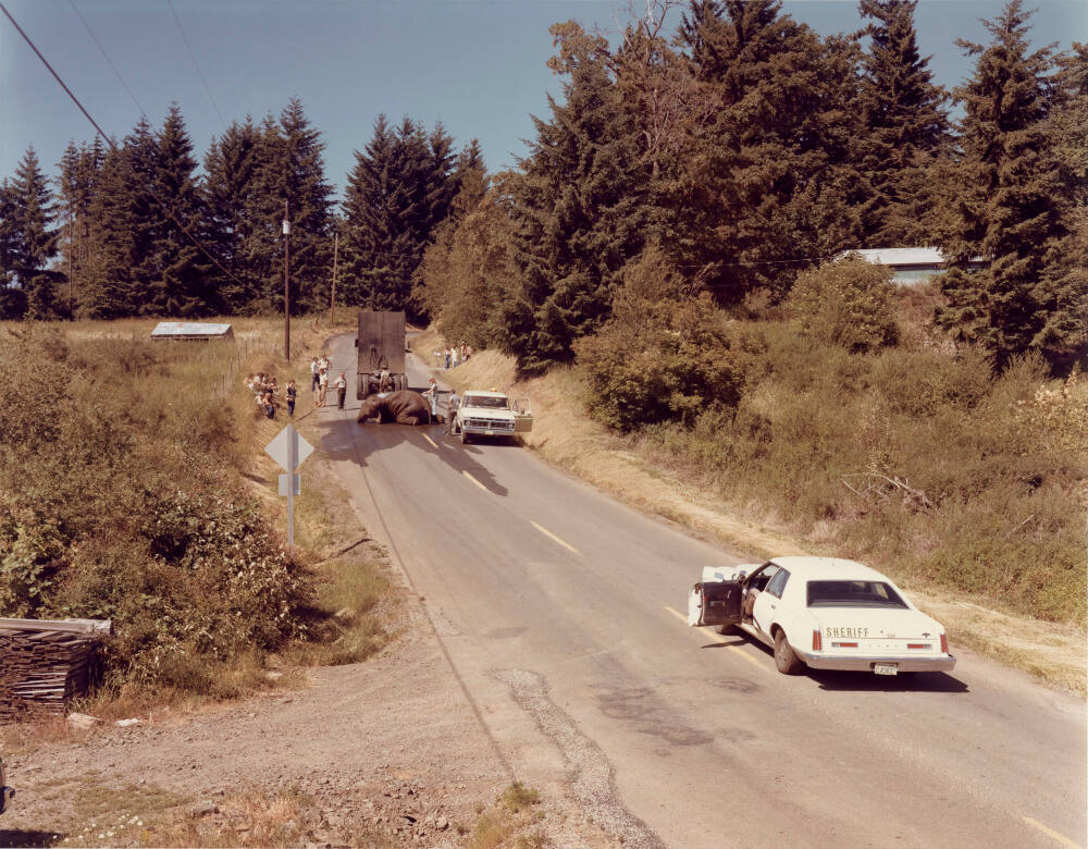 InscribedTitled, editioned and dated on sheet verso, bottom, in black marker: "American Roads 9/100 Exhausted Renegade Elephant, Woodland, Washington, June 1979, N. June 1979 / P. April 1982"