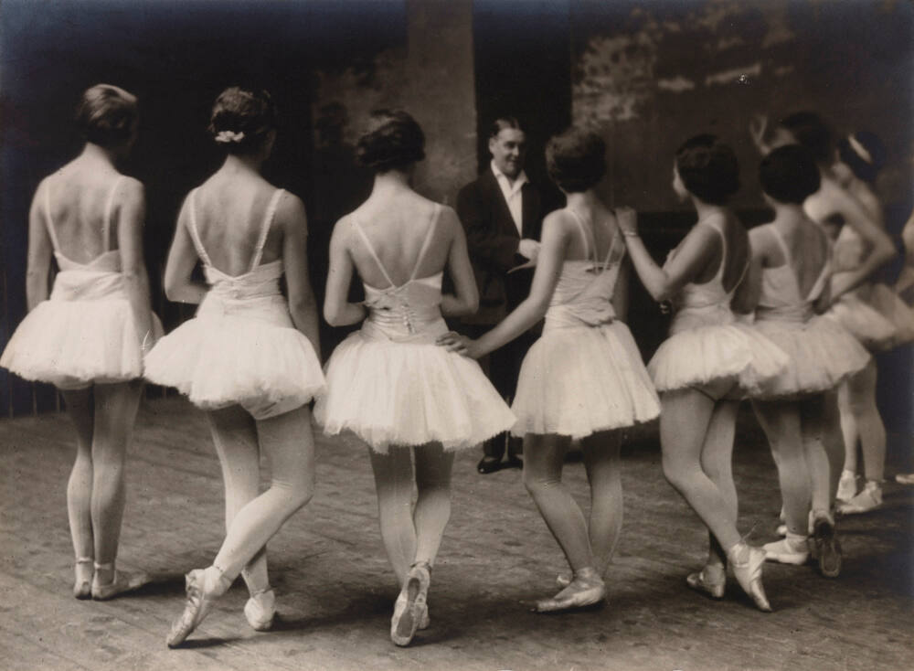 Inscribed on mount verso, top, in black pen: "Ballet rehearsal of Swan Lake by the Corps de Ballet in the Coupola of the Opera de Paris. 1930"
