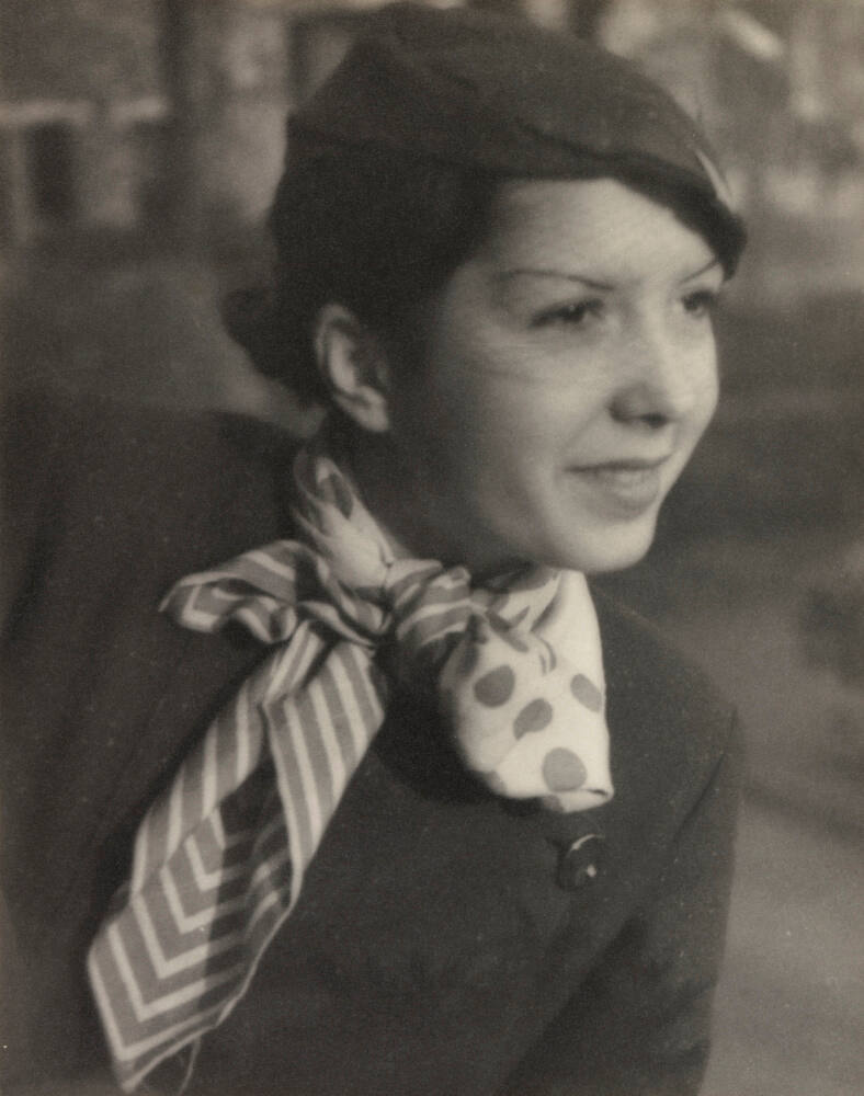 Inscribed on mount verso, top, in black pen: "A model of couturier Coco Chanel, 5 Rue Cambou, Paris 1931".