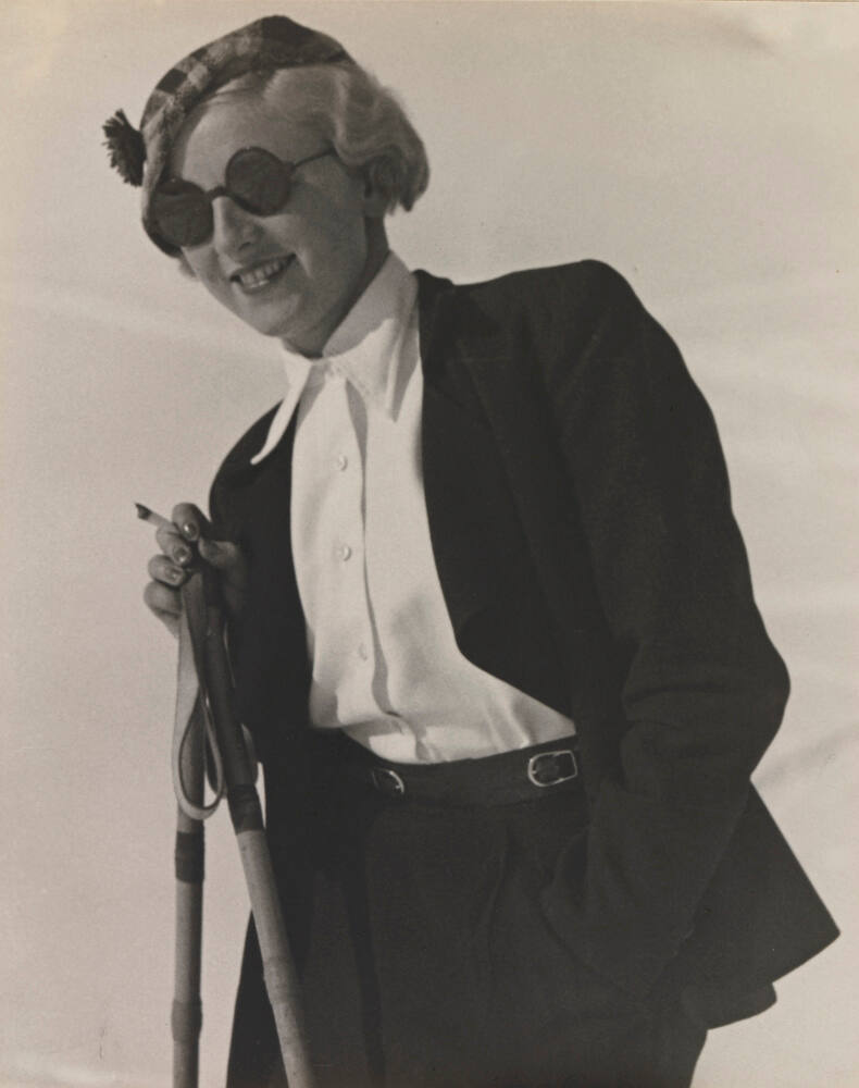 Inscribed on mount verso, top, in black pen: "Vacationing skier from Austria in St. Moritz 1932".