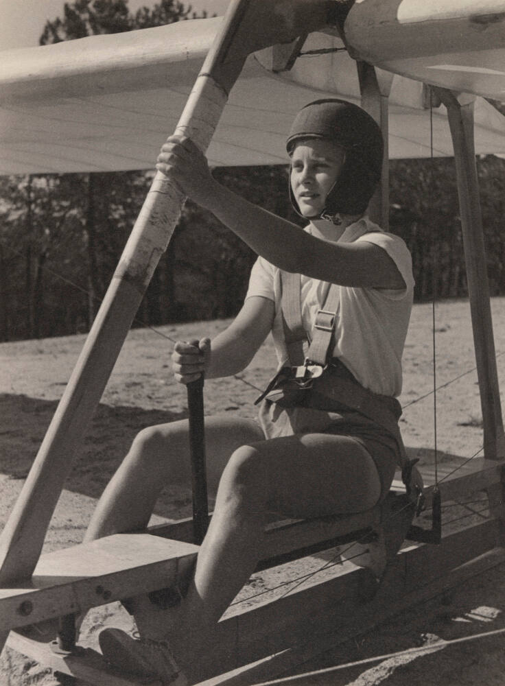 Inscribed on mount verso, top, in blue pen: "German girl of the Hitler Youth learns to fly a glider 1933".