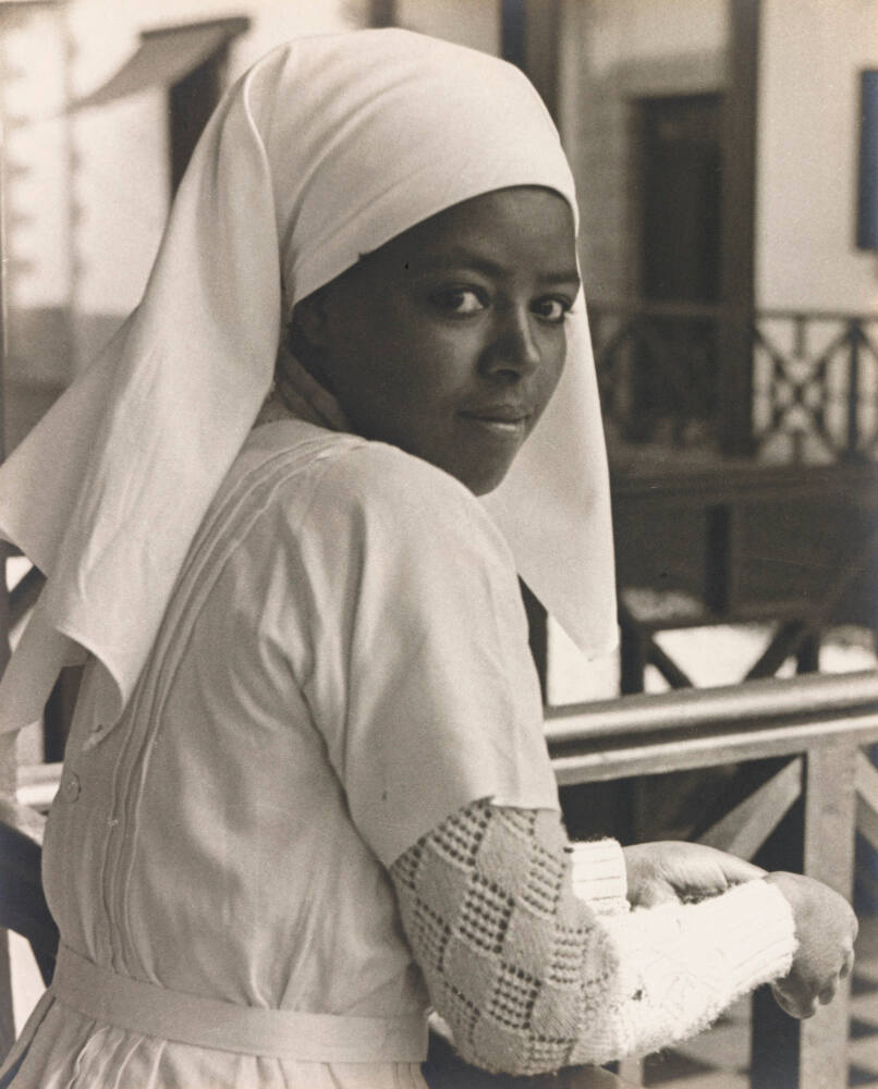 InscribedInscribed on mount verso, top, in black pen: "Portrait of an Ethiopian nurse, Addis Ababa"
