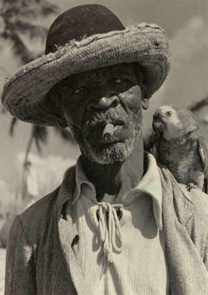 Inscribed on mount verso, top, in blue pen: "Native of Pernambuco (Brazil) with parrot 1934".