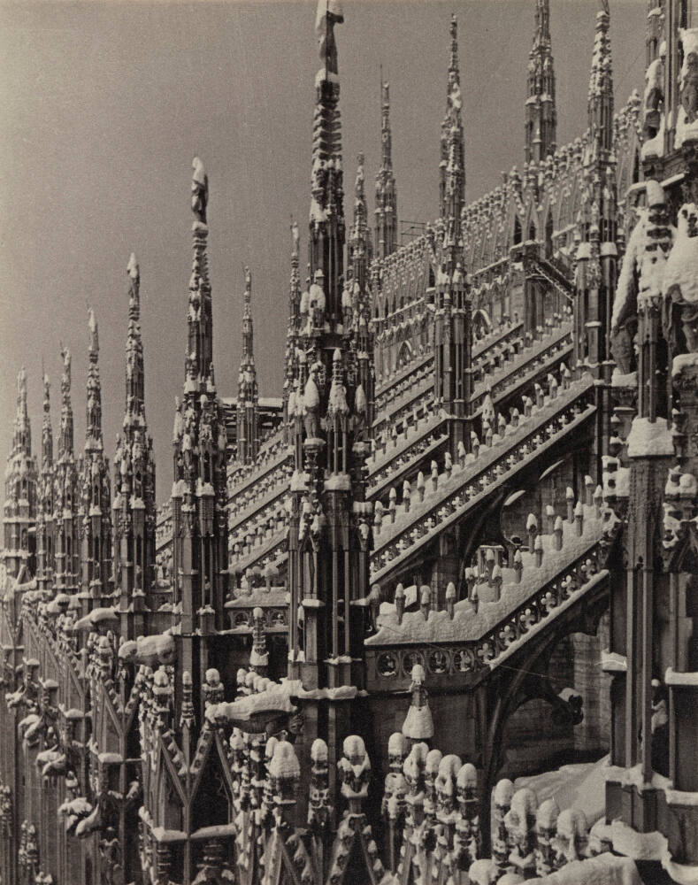 Inscribed on mount verso, top, in blue pen: "The Duomo in Milan after snowfall 1934".